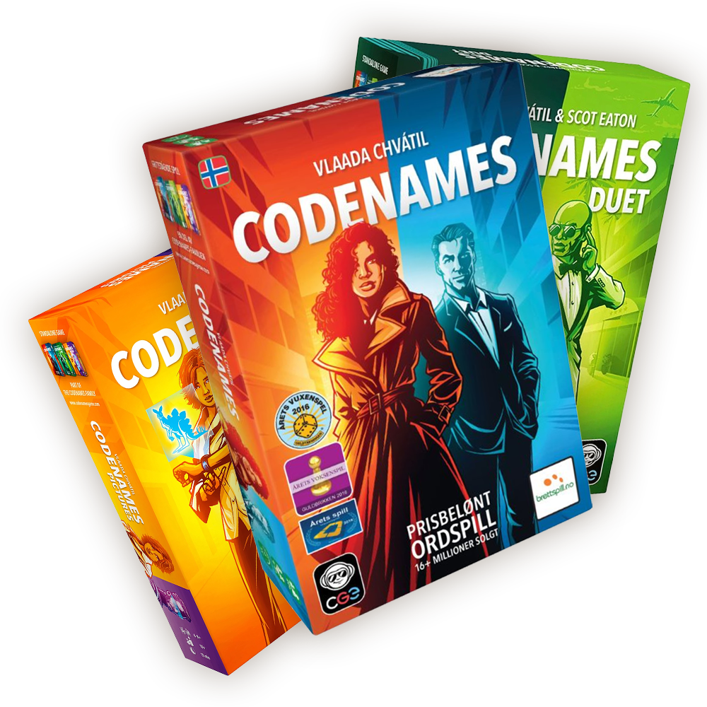 To spionlag kjemper om å finne sine hemmelige agenter ved hjelp av ettordsledetråder og smarte assosiasjoner. Bare deres spionsjef kjenner agentenes identitet – og ett feilaktig gjetning kan avsløre fiendens planer eller brått avslutte spillet. Codenames er lett å lære, fullt av latter og genialt samarbeid, og det passer like godt til vennekvelder, familiespill og fester.